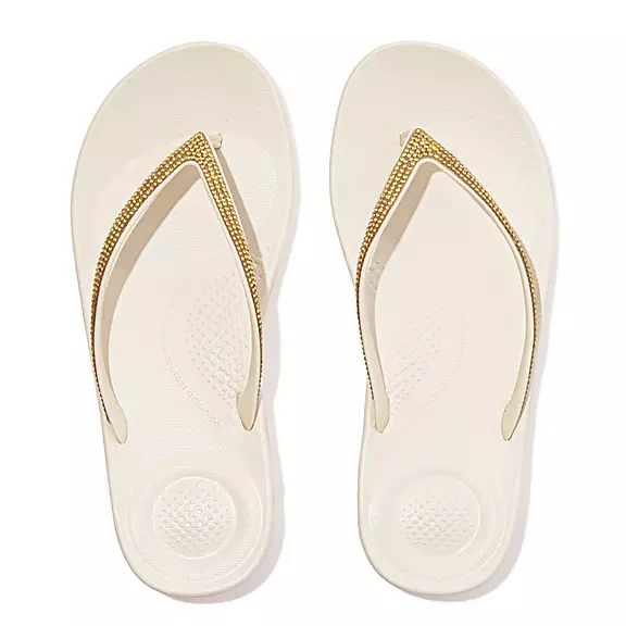 From the top, they look like your typical surfer-girl flip-flops. Underneath, they’re engineered with our iQushion™ midsole tech. Made of high-rebound air-foam for non-stop cushioning, with heel and ball-of-foot impact pillows, and a contoured arch-curve for natural support when you walk. This version adorned with sparkling micro-'crystals', throw a pair in your suitcase and you’ll find yourself wearing them to beach, bar and beyond. Waterproof and slip-resistant.Upper Material:RubberLining Material:UnlinedFastening:Slip-OnOutsole:EVATechnology:iQushionFOOTBED TECHNOLOGYUltra-light, supersleek cushioning that’s ergonomically shaped for all-day comfortMade of ultra-light, flexible air-foam cushioningImpact pillows front and backAnatomically shaped footbed, with built-in arch contour that hugs your feet