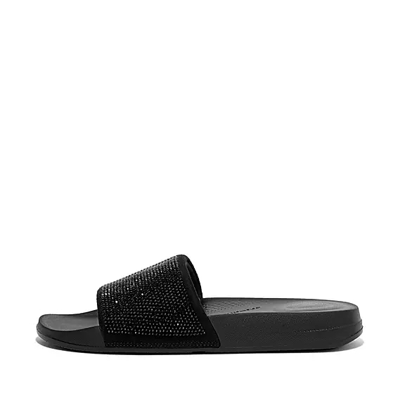 The pool slide cousins of our surfer-girl flip-flops, these are superlight and sporty-casual. Underneath there's the same iQushion� midsole tech: ergonomically shaped, high-rebound, air-foam cushioning � with impact pillows front and back, and natural arch support � for walk-all-day comfort. On top, wide padded 'crystal'-covered straps, here in water-resistant fabric (the lining too), so water drops roll off and they dry fast if drenched. Great for padding around at home (try them with socks), adding bling to an off-duty outfit, or on a beach. Dive in!Upper Material:MicrofibreLining Material:Neoprene-Lined UpperFastening:Slip-OnOutsole:EVATechnology:iQushionFOOTBED TECHNOLOGYUltra-light, supersleek cushioning that’s ergonomically shaped for all-day comfortMade of ultra-light, flexible air-foam cushioningImpact pillows front and backAnatomically shaped footbed, with built-in arch contour that hugs your feet